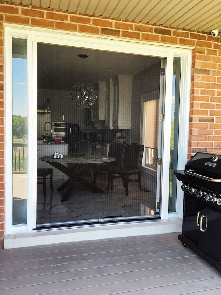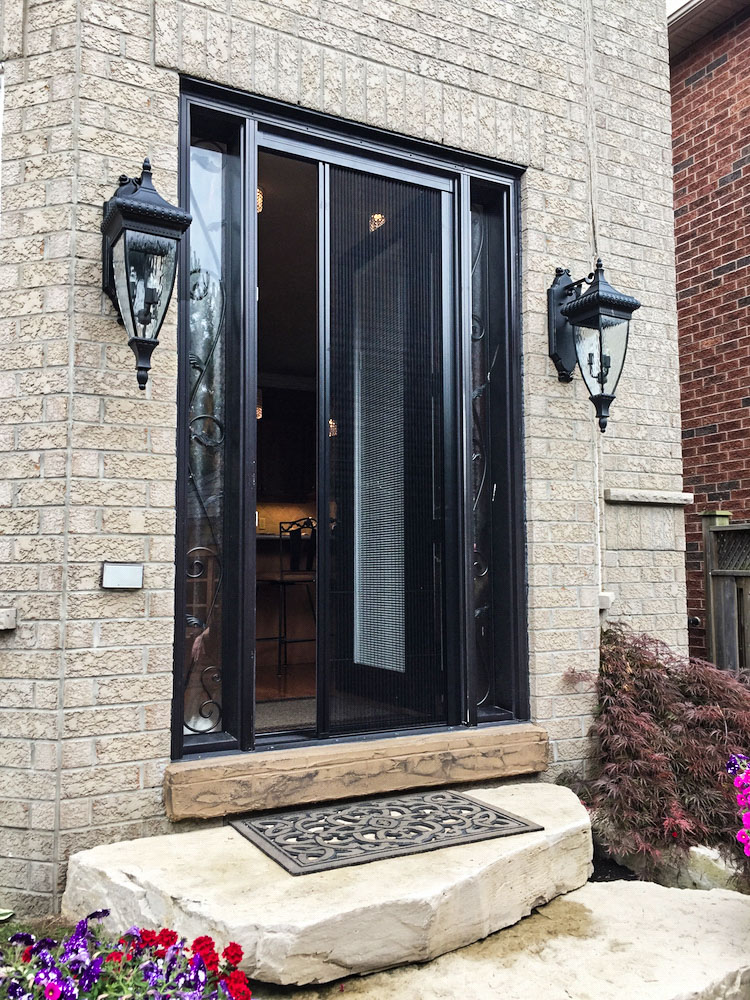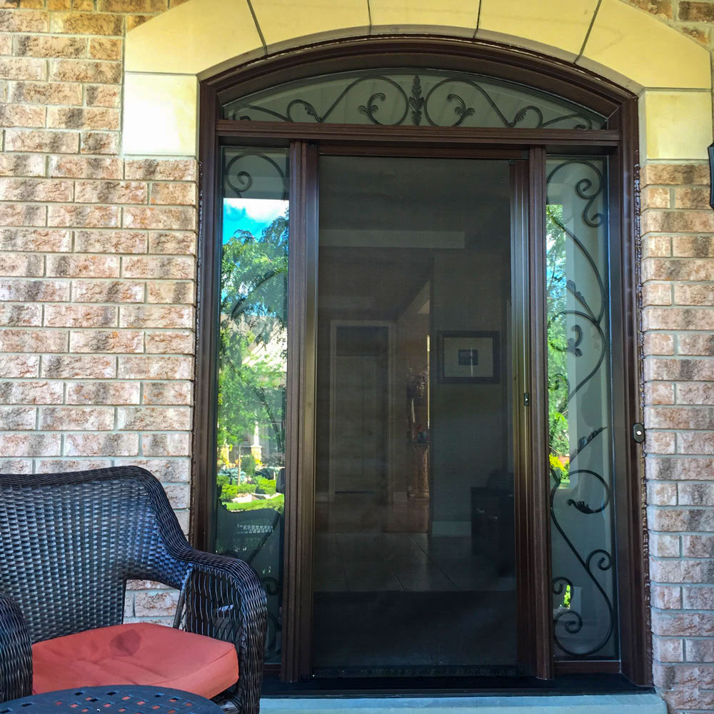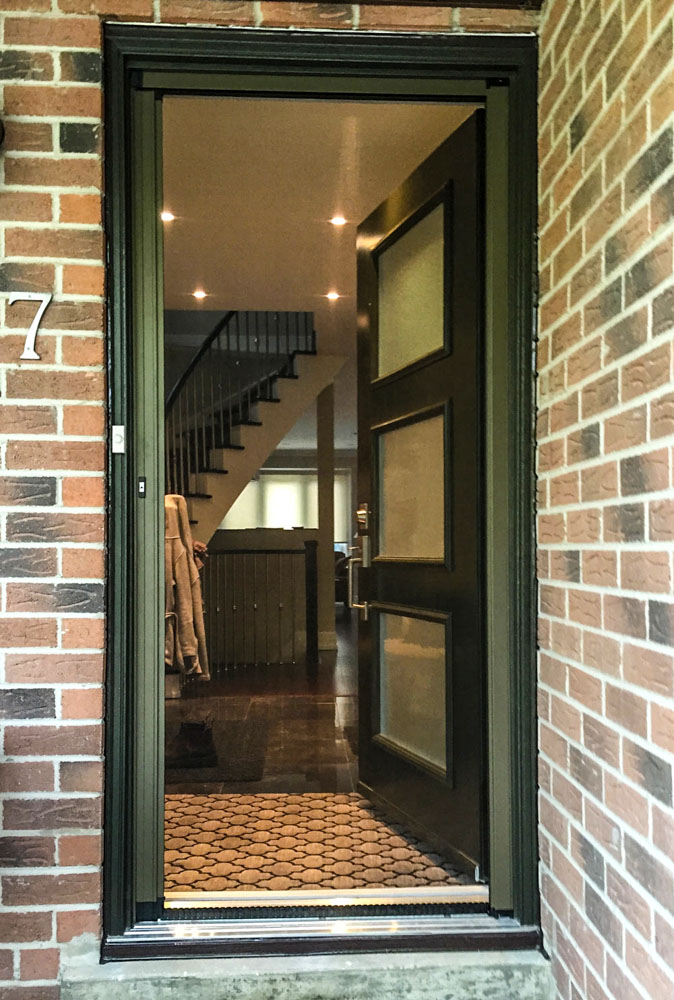 I did my homework and contacted all the top screen door manufacturers and none had what I was looking for. They were either bulky, or the bottom track was too high and people could easily trip and fall, or they didn't have the matching color.
