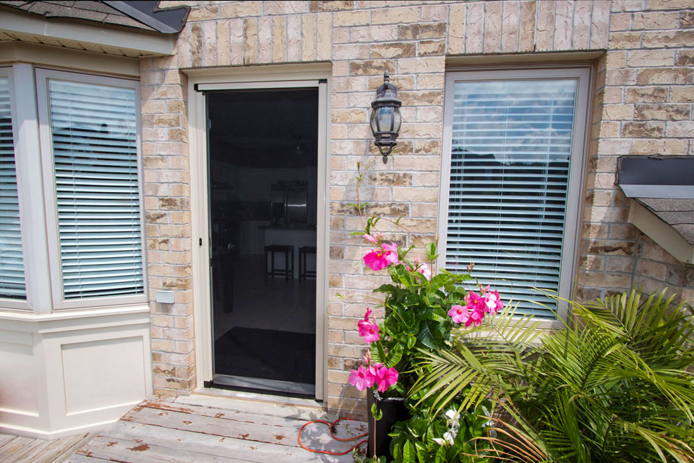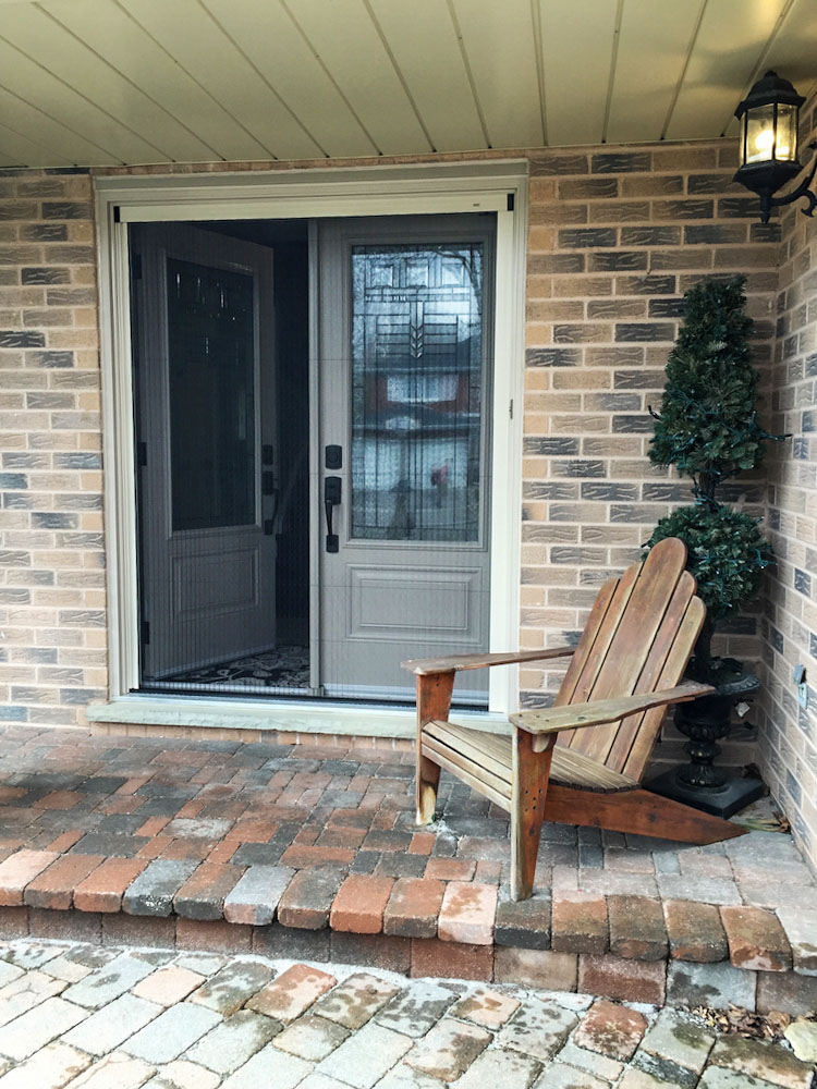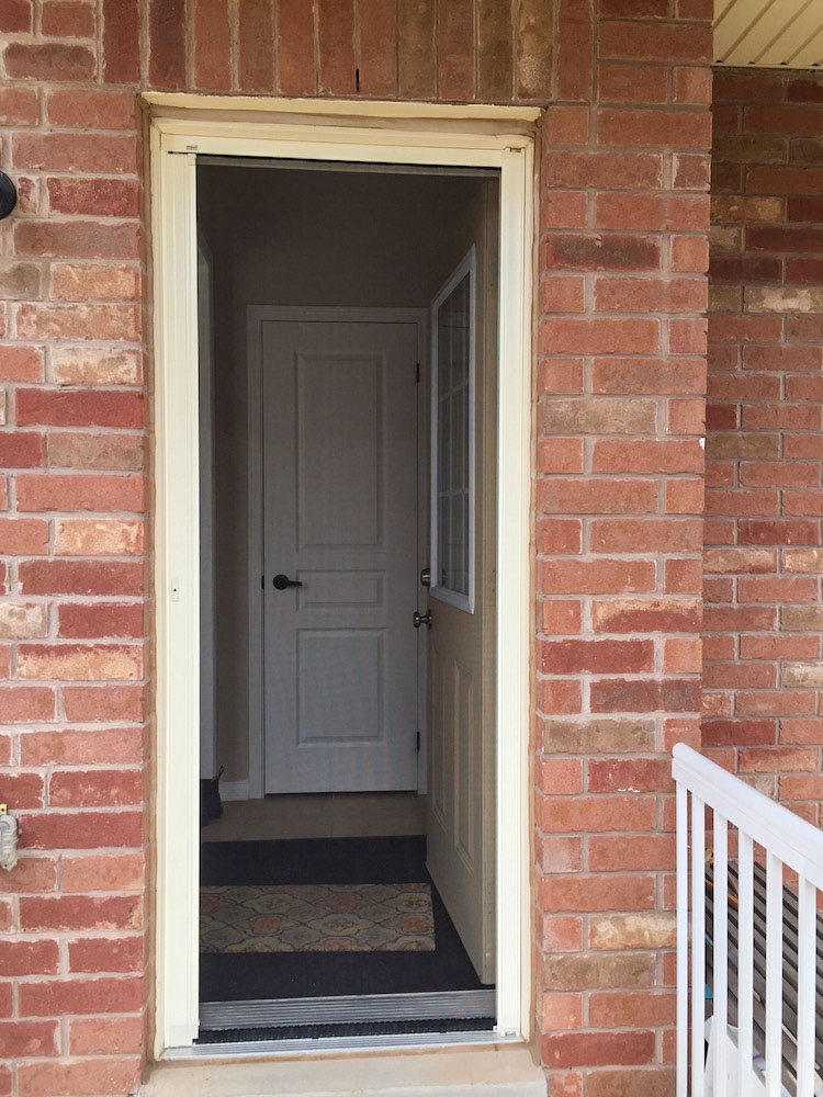 1. My screen door was outside facing, hence it had to blend nicely with our patio doors and not stick out from the door trim. Moreover, it had to withstand harsh weather and direct sunlight.